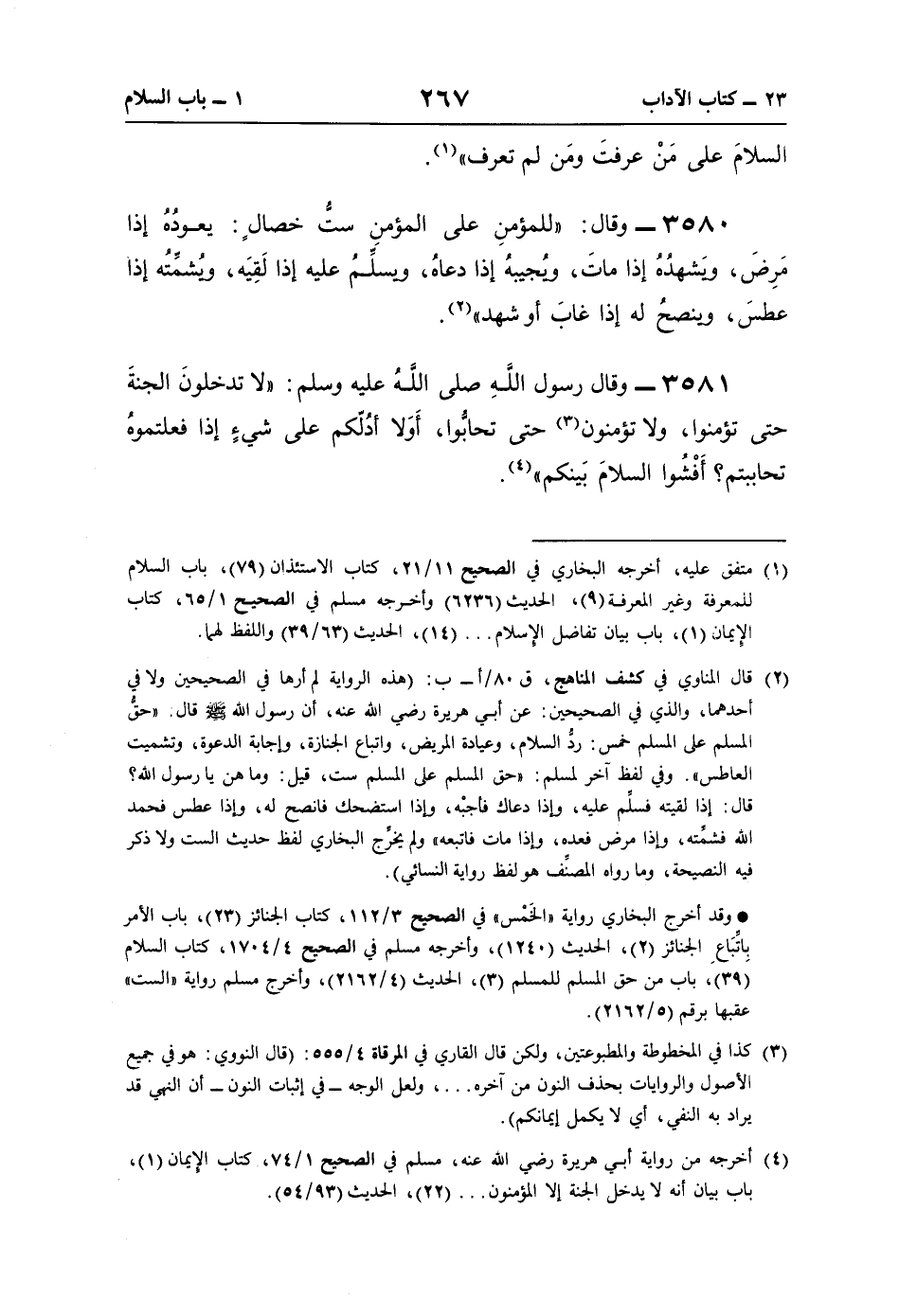 3581 - وقال رسول اللَّهِ صلى اللَّهُ عليه وسلم: "لا تدخلونَ الجنةَ حتَّى تؤمنوا، ولا تؤمنون (¬3) حتَّى تحابُّوا، أَوَلا أدُلّكم على شيءٍ إذا فعلتموهُ تحاببتم؟ أَفْشُوا السلامَ بَينكم" (¬4).