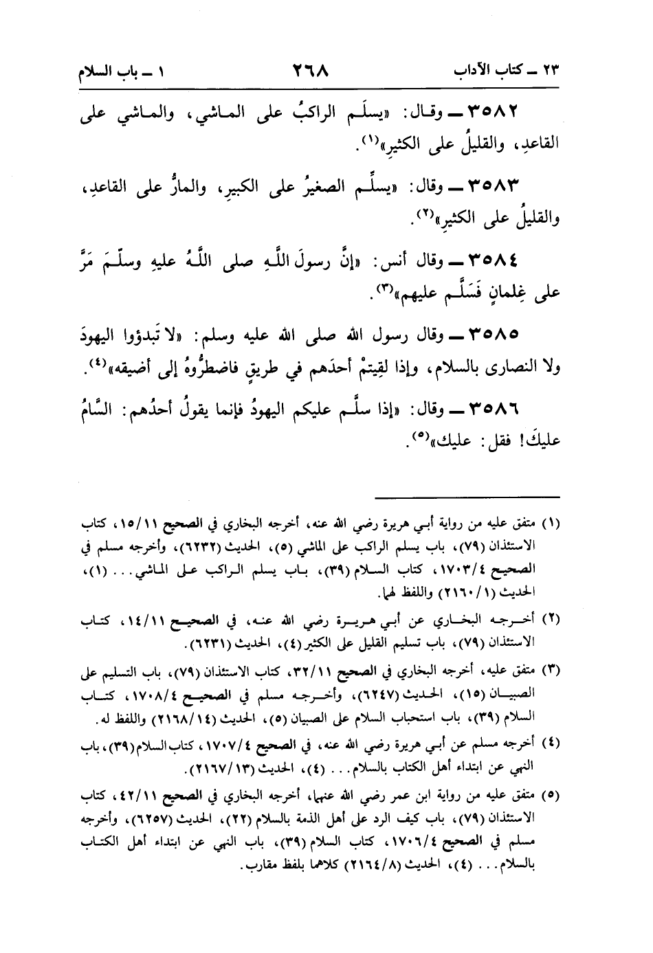 3584 - وقال أنس: "إنَّ رسولَ اللَّهِ صلى اللَّهُ عليهِ وسلّمَ مَرَّ على غِلمانٍ فَسَلَّم عليهم" (¬3).