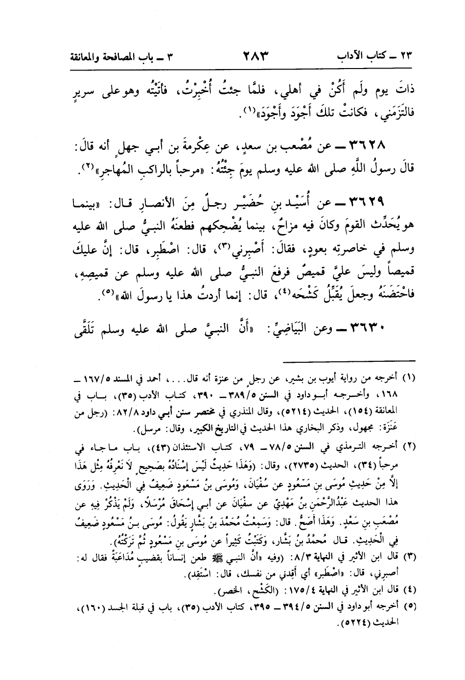 (¬5) أخرجه أبو داود في السنن 5/ 394 - 395، كتاب الأدب (35)، باب في قبلة الجسد (160)، الحديث (5224).