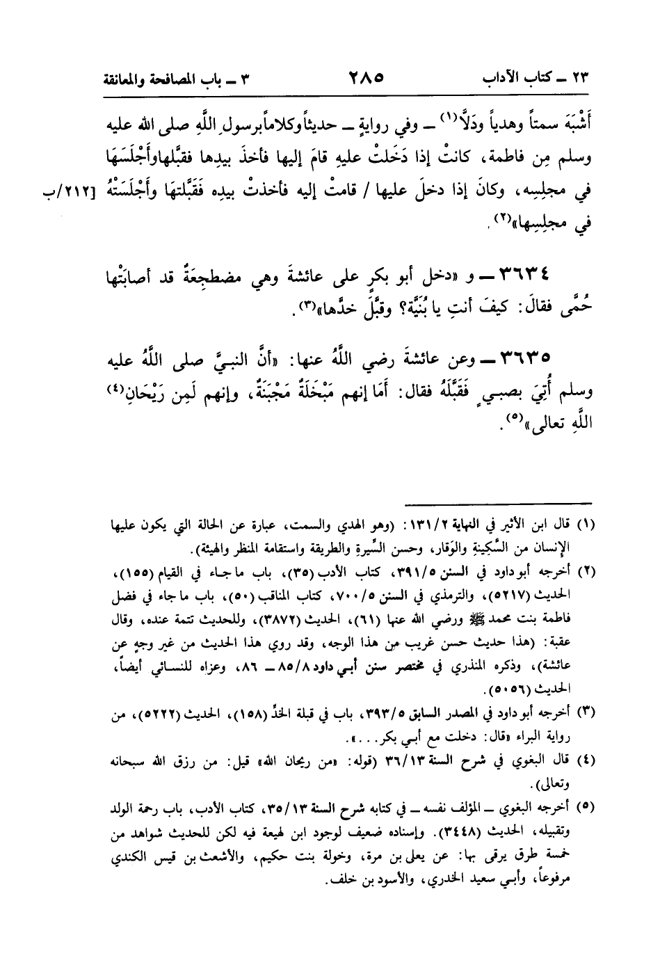 (¬3) أخرجه أبو داود في المصدر السابق 5/ 393، باب في قبلة الخدِّ (158)، الحديث (5222)، من رواية البراء "قال: دخلت مع أبي بكر. . . ".