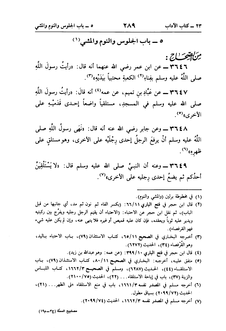 5 - باب الجلوس والنوم والمشي (¬1)