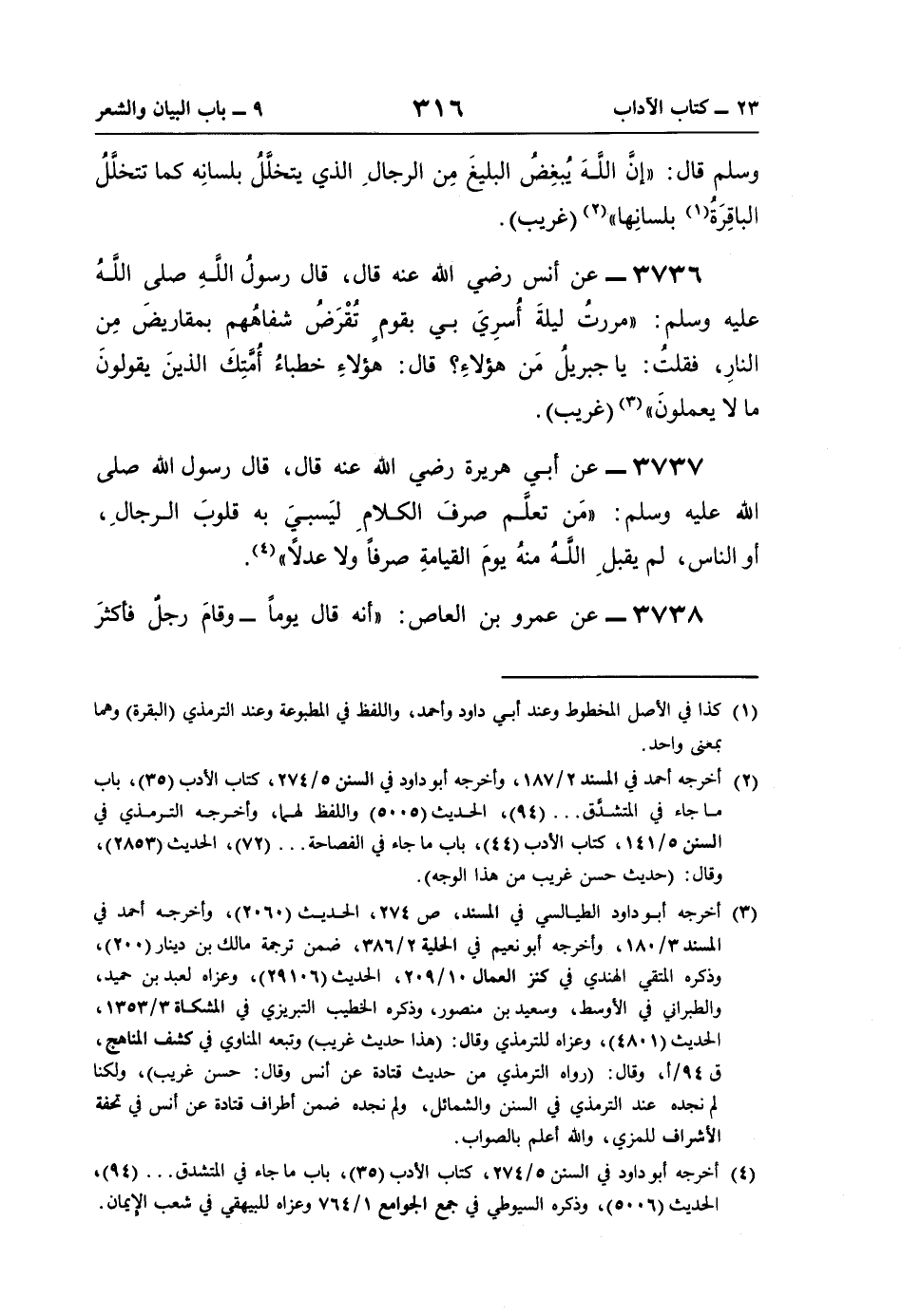 3738 - عن عمرو بن العاص: "أنَّه قال يومًا -وقامَ رجلٌ فأكثرَ