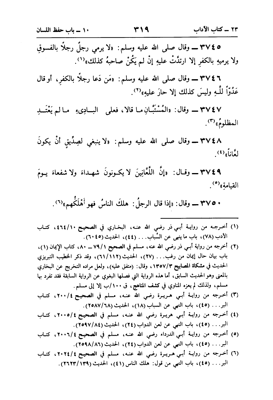 (¬3) أخرجه من رواية أبي هريرة رضي اللَّه عنه، مسلم في الصحيح 4/ 200، كتاب البر. . . (45)، باب النهي عن السباب (18)، الحديث (68/ 2587).