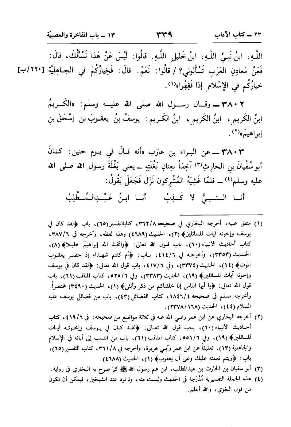3802 - وقال رسول اللَّه صلى اللَّه عليه وسلم: "الكَريمُ ابنُ الكَريمِ، ابنُ الكَريمِ، ابنُ الكَريم: يوسفُ بنُ يعقوبَ بن إسْحقَ بنِ إبراهيمَ" (¬2).