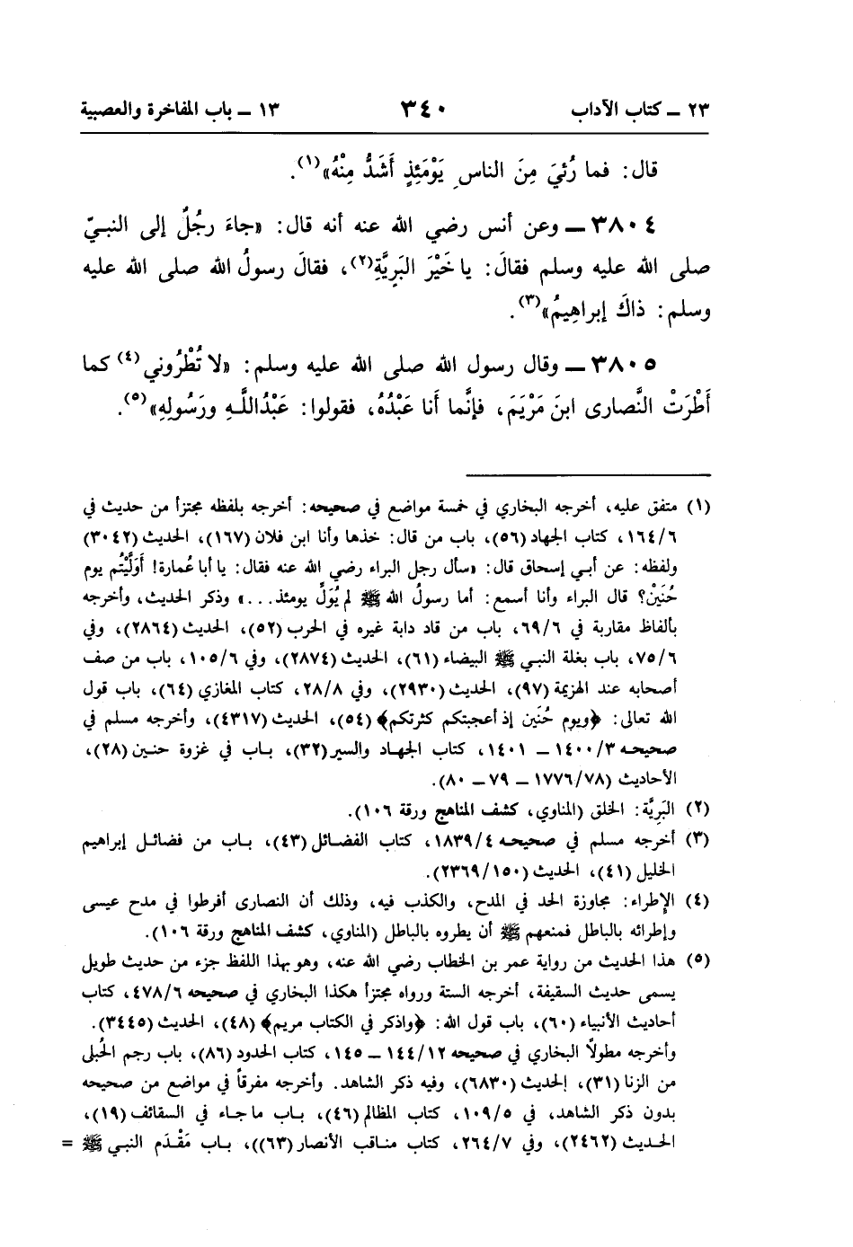 3804 - وعن أنس رضي اللَّه عنه أنّه قال: "جاءَ رجُلٌ إلى النَّبيّ صلى اللَّه عليه وسلم فقالَ: يا خَيْرَ البَرِيَّةِ (¬2)، فقالَ رسولُ اللَّه صلى اللَّه عليه وسلم: ذاكَ إبراهِيمُ" (¬3).