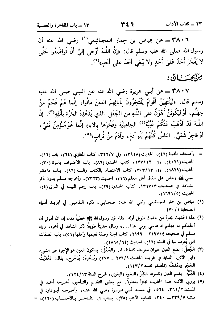(¬4) العُبِّيَّةُ: بضم العين وكسرها الكِبْرُ والنخوة (البغوي، شرح السنة 13/ 124).