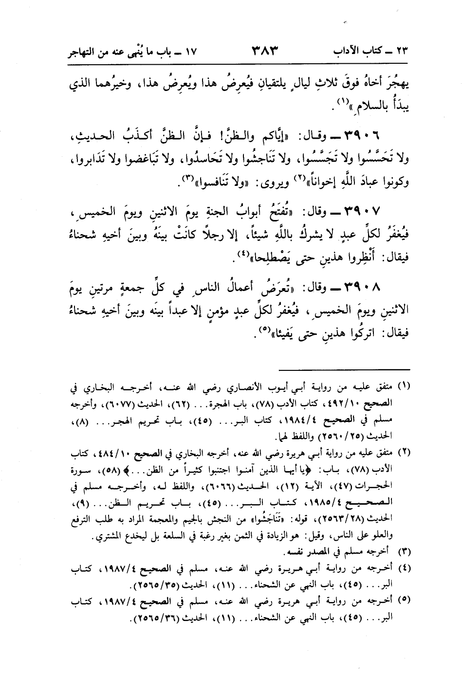 (¬5) أخرجه من رواية أبي هريرة رضي اللَّه عنه، مسلم في الصحيح 4/ 1987، كتاب البر. . . (45)، باب النهي عن الشحناء. . . (11)، الحديث (36/ 2565).