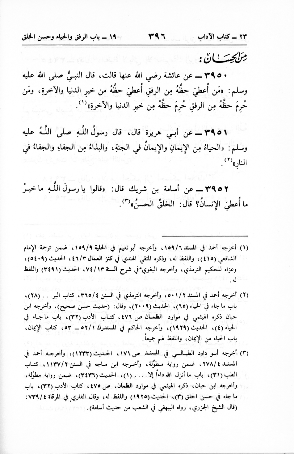 3952 - عن أسامة بن شريك قال: "قالوا يا رسولَ اللَّهِ ما خيرُ ما أُعطيَ الإِنسانُ؟ قال: الخلقُ الحسنُ" (¬3).