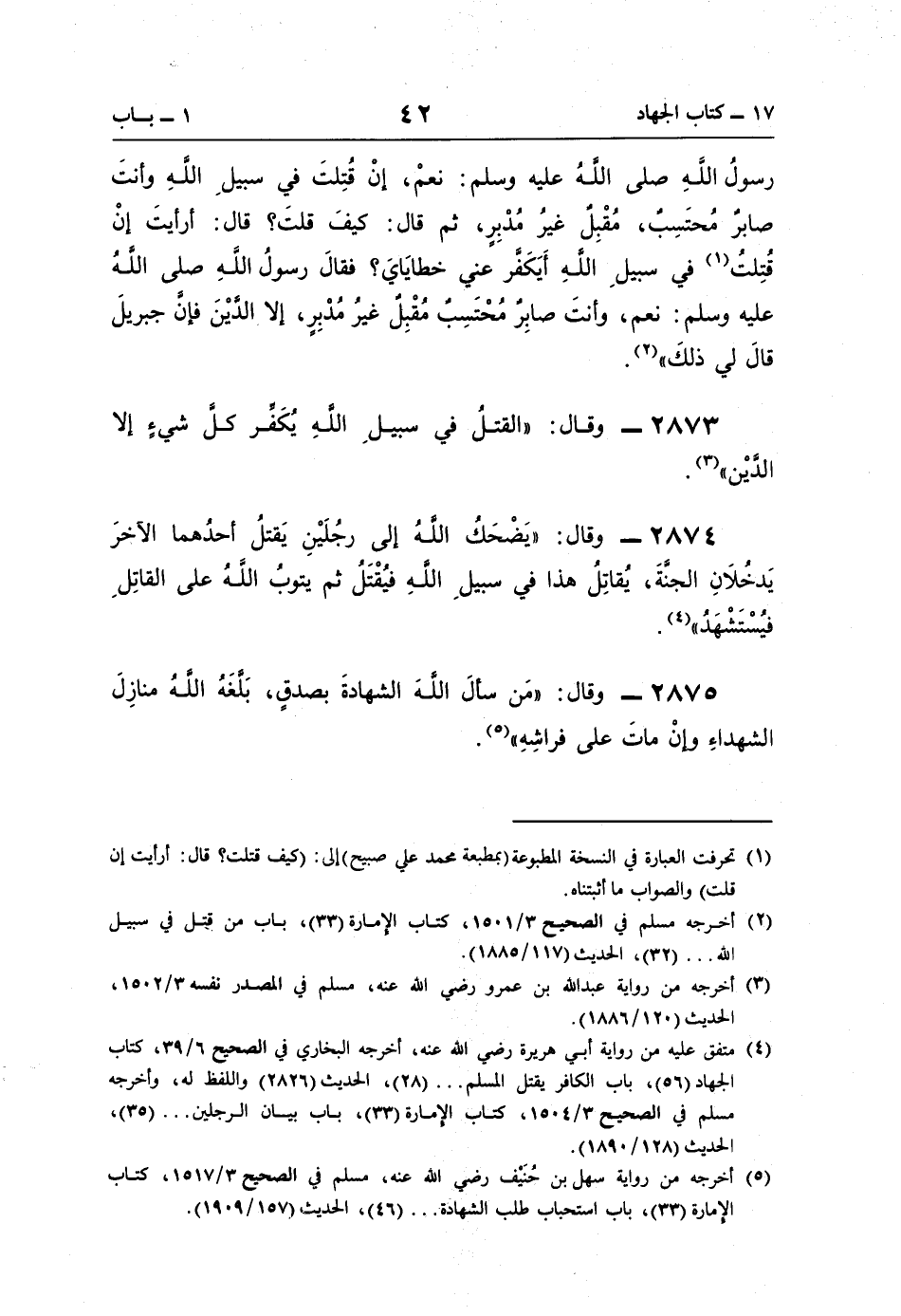 (¬2) أخرجه مسلم في الصحيح 3/ 1501، كتاب الإمارة (33)، باب من قتل في سبيل اللَّه. . . (32)، الحديث (117/ 1885).