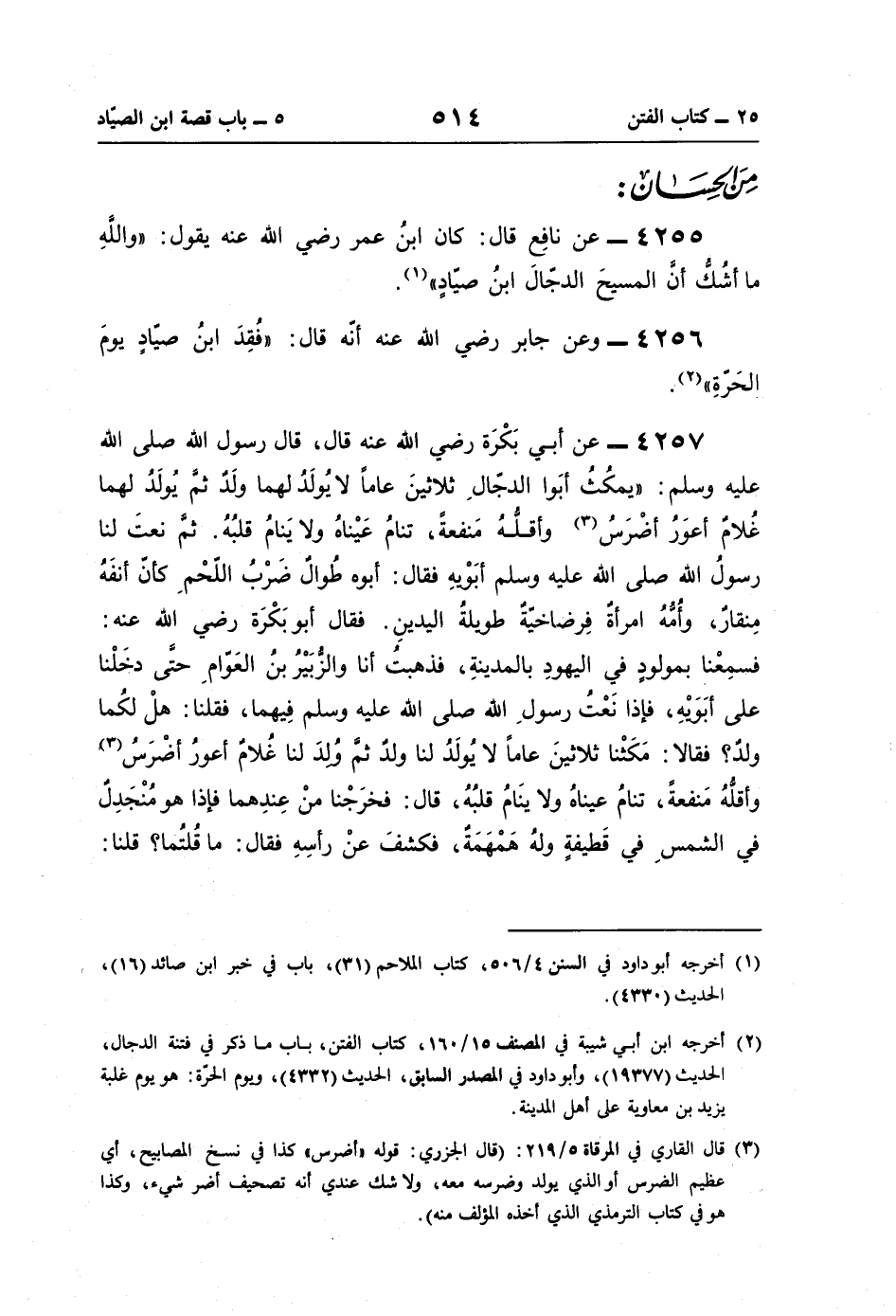 (¬1) أخرجه أبو داود في السنن 4/ 506، كتاب الملاحم (31)، باب في خبر ابن صائد (16)، الحديث (4330).