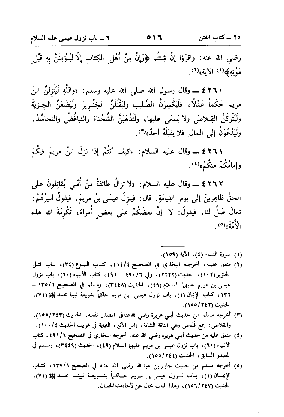 4261 - وقال عليه السلام: "كيفَ أنتُمْ إذا نزلَ ابنُ مريمَ فيكُمْ وإمامُكُمْ منكُمْ" (¬4).