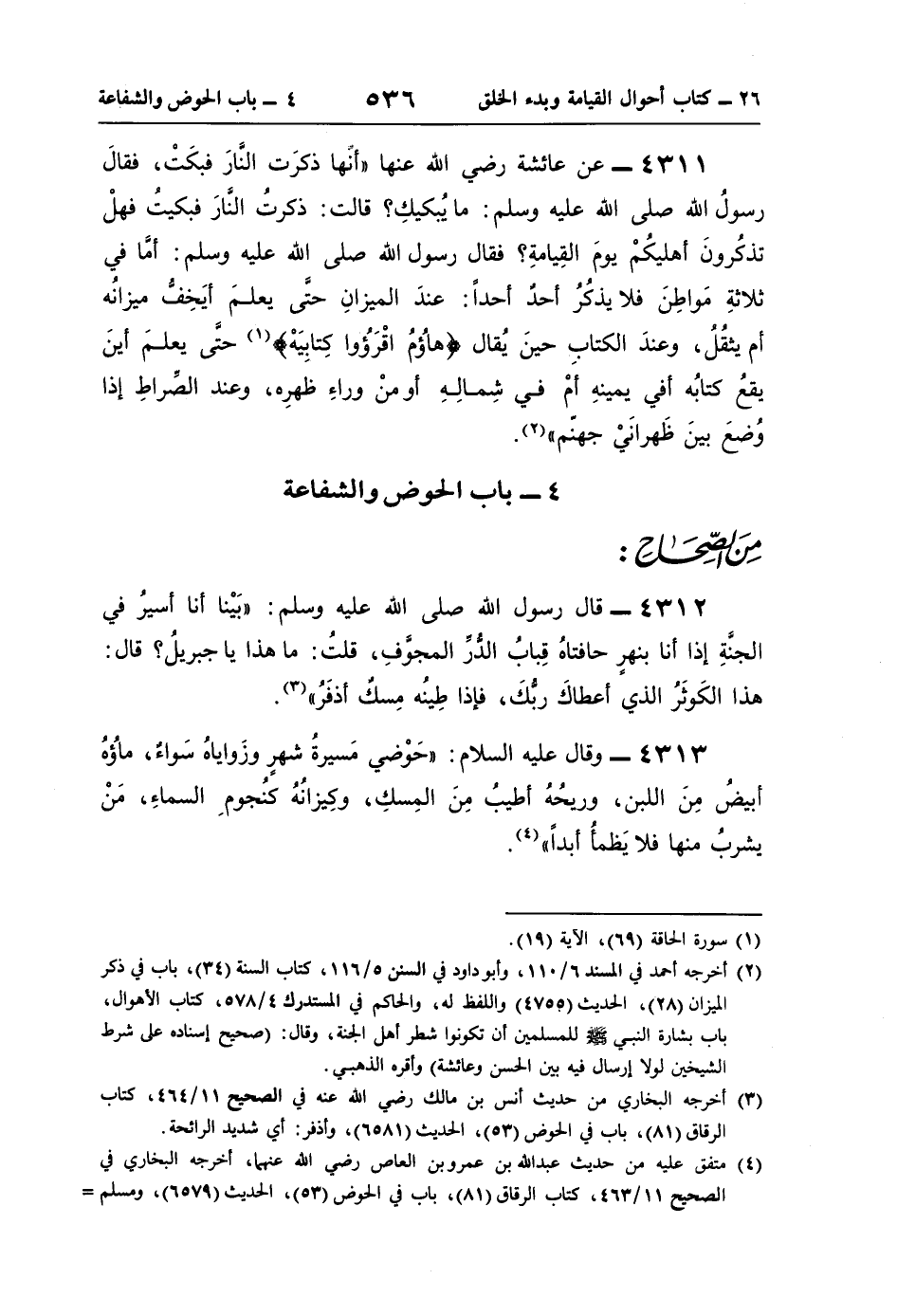 (¬4) متفق عليه من حديث عبد اللَّه بن عمرو بن العاص رضي اللَّه عنهما، أخرجه البخاري في الصحيح 11/ 463، كتاب الرقاق (81)، باب في الحوض (53)، الحديث (6579)، ومسلم =