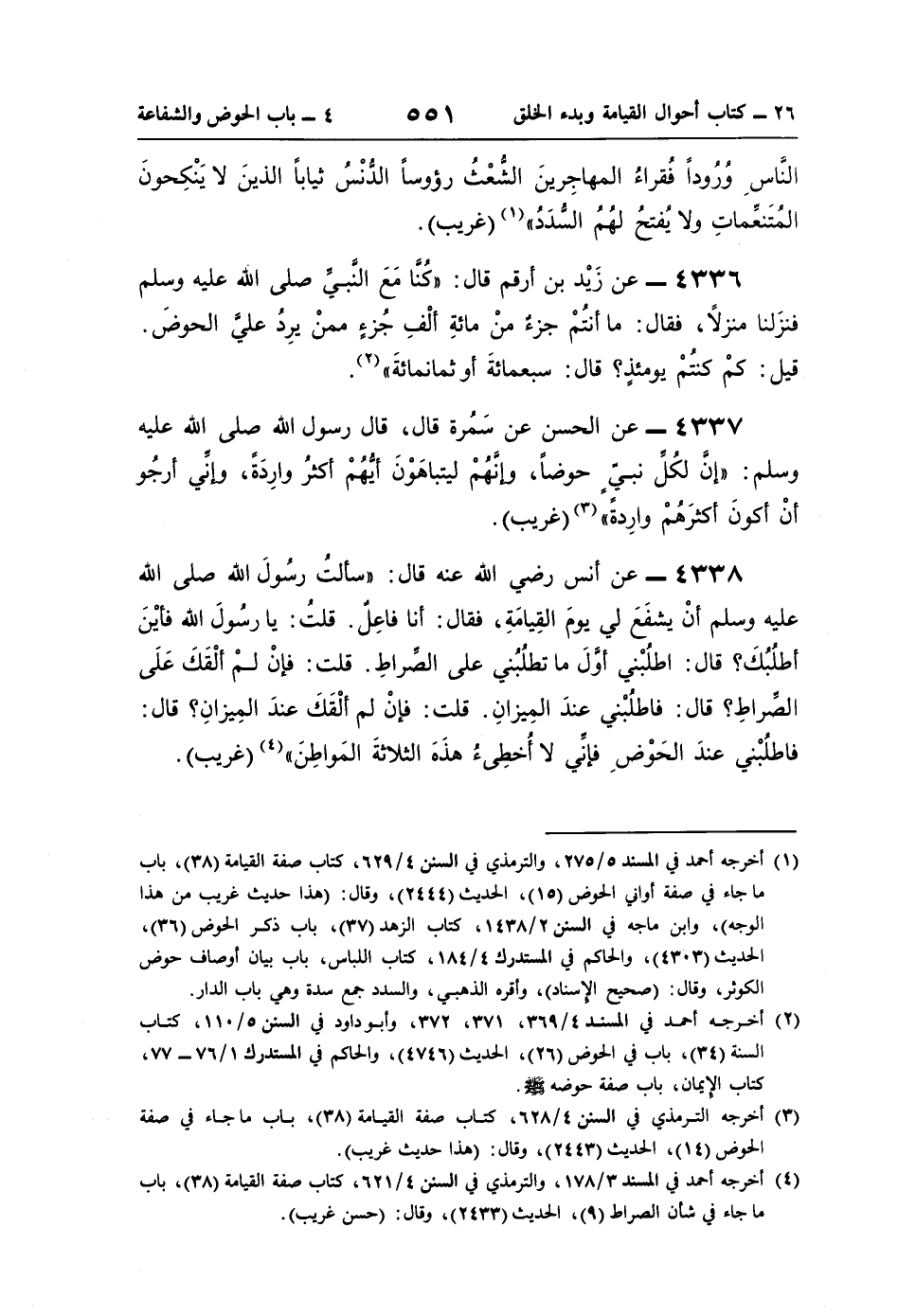 (¬3) أخرجه الترمذي في السنن 4/ 628، كتاب صفة القيامة (38)، باب ما جاء في صفة الحوض (14)، الحديث (2443)، وقال: (هذا حديث غريب).