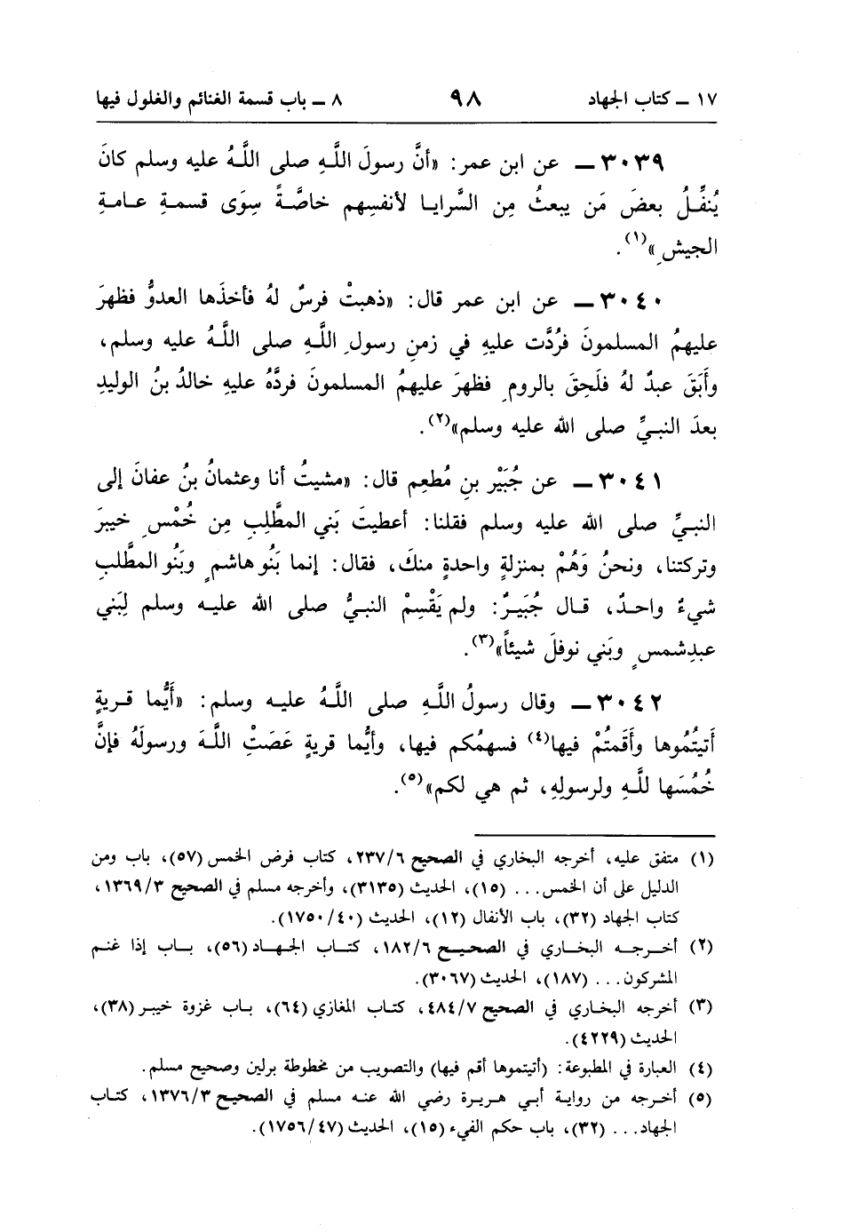 (¬5) أخرجه من رواية أبي هريرة رضي اللَّه عنه مسلم في الصحيح 3/ 1376، كتاب الجهاد. . . (32)، باب حكم الفيء (15)، الحديث (47/ 1756).