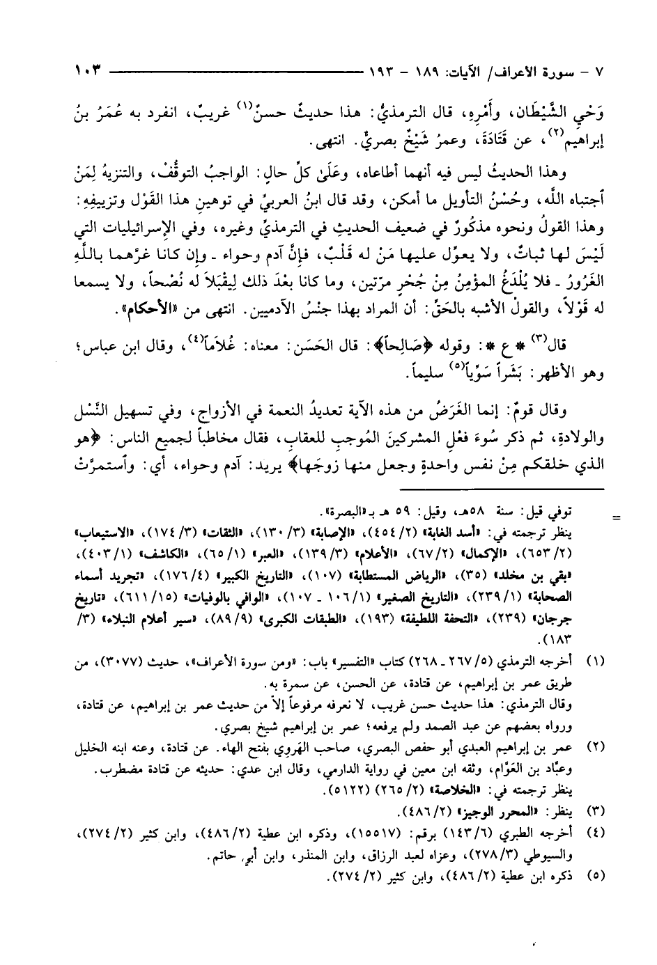 (1) أخرجه الترمذي (5/ 267- 268) كتاب «التفسير» باب: «ومن سورة الأعراف» ، حديث (3077) ، من طريق عمر بن إبراهيم، عن قتادة، عن الحسن، عن سمرة به.