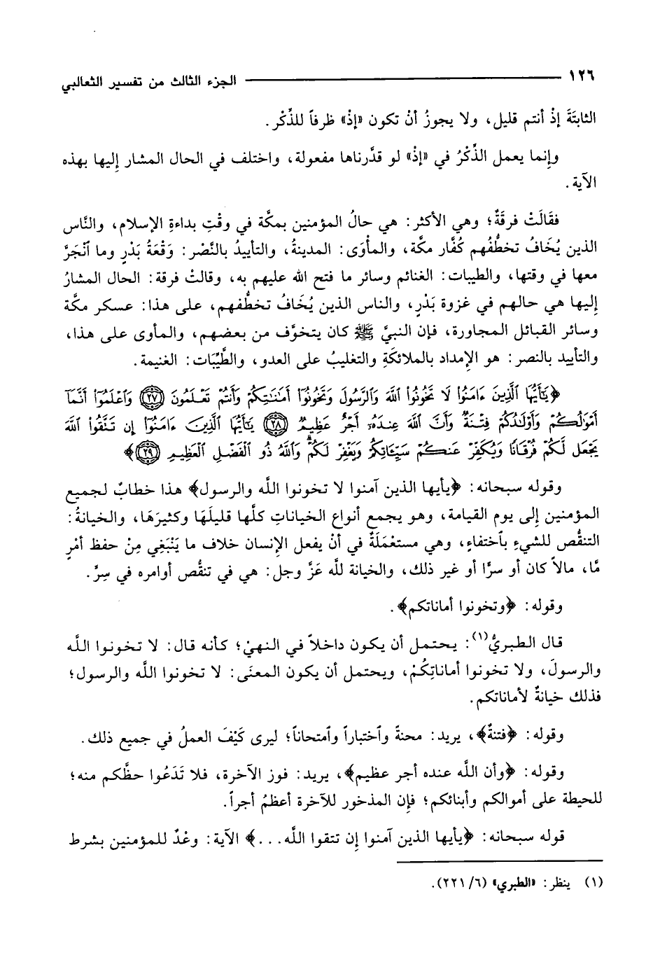 كتاب تفسير الثعالبي = الجواهر الحسان في تفسير القرآن (اسم الجزء: 3)