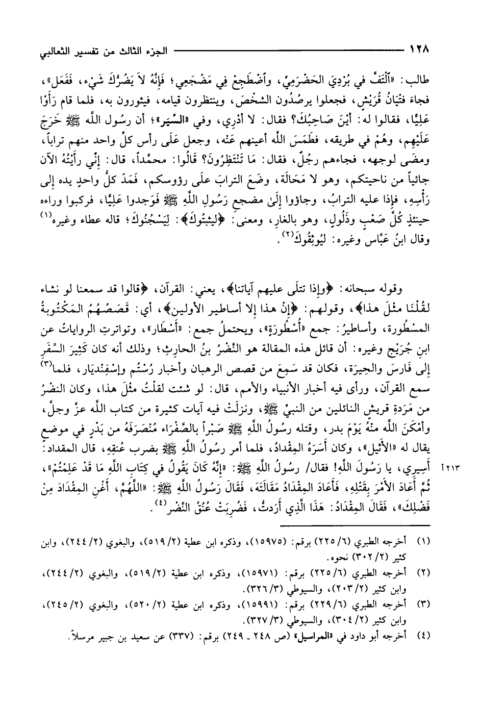(3) أخرجه الطبري (6/ 229) برقم: (15991) ، وذكره ابن عطية (2/ 520) ، والبغوي (2/ 245) ، وابن كثير (2/ 304) ، والسيوطي (3/ 327) .