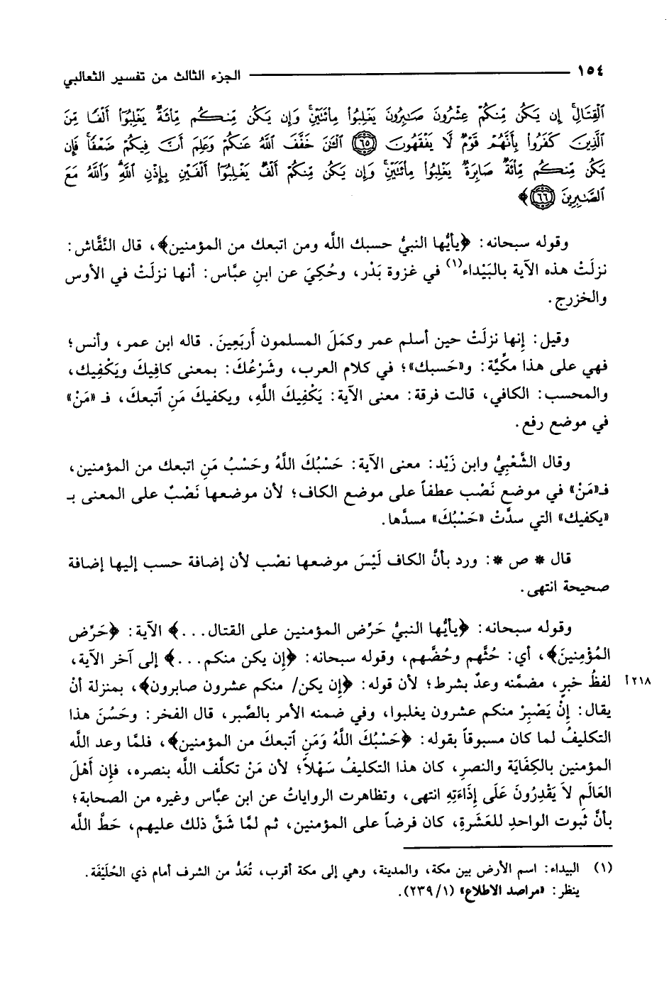 وقوله سبحانه: يا أَيُّهَا النَّبِيُّ حَسْبُكَ اللَّهُ وَمَنِ اتَّبَعَكَ مِنَ الْمُؤْمِنِينَ، قال النَّقَّاش: