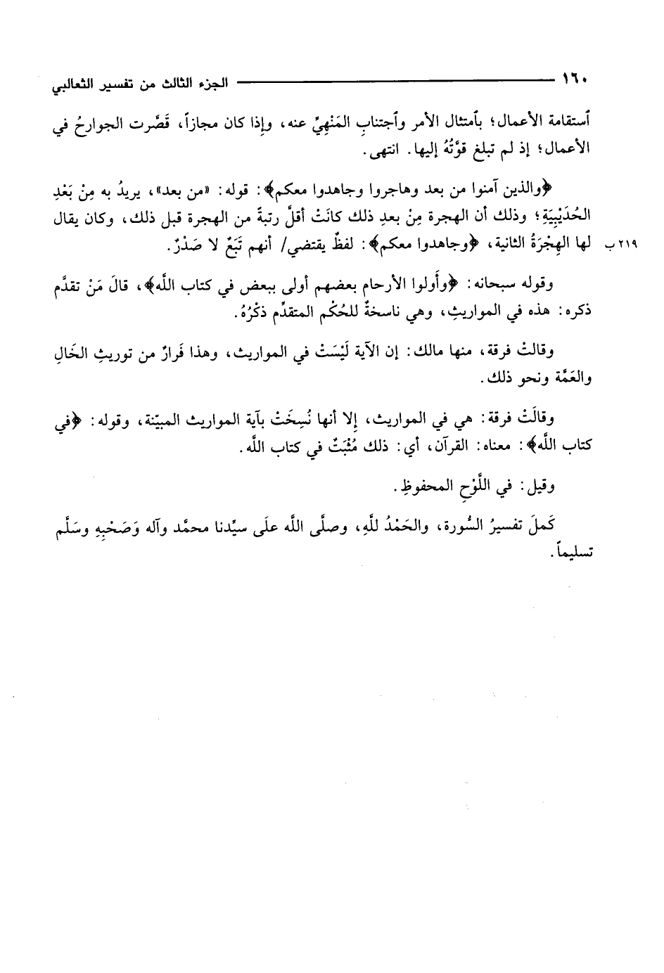 وقالَتْ فرقة: هي في المواريث، إِلا أنها نُسِخَتْ بآية المواريث المبيّنة، وقوله: فِي كِتابِ اللَّهِ: معناه: القرآن، أي: ذلك مُثْبَتٌ في كتاب اللَّه.
