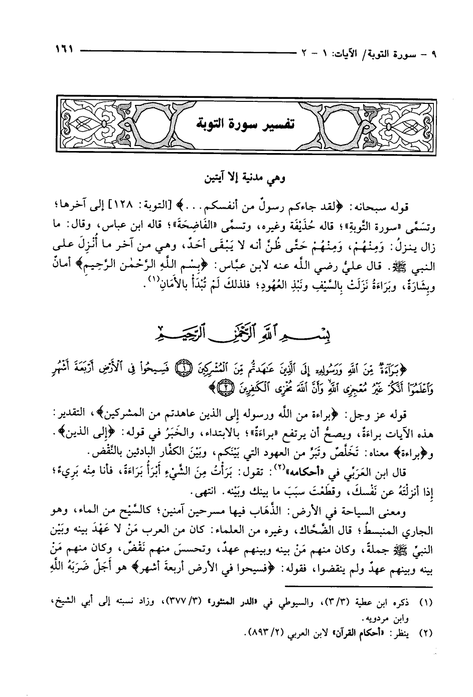 [سورة التوبة (9) : الآيات 1 الى 2]