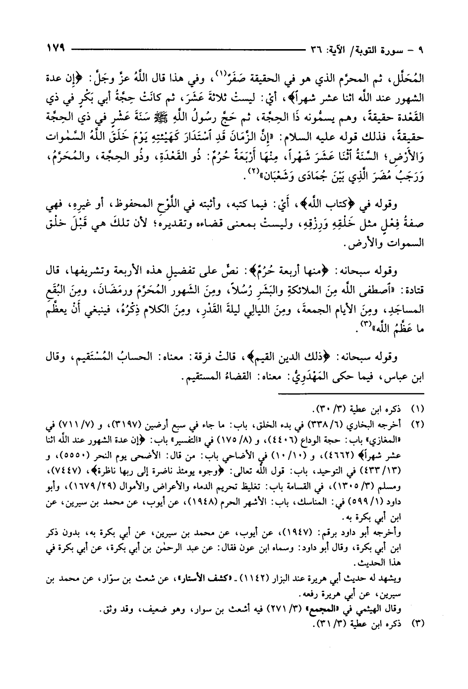 وقوله سبحانه: مِنْها أَرْبَعَةٌ حُرُمٌ: نصٌّ على تفضيلِ هذه الأربعة وتشريفها، قال قتادة: «اصطفى اللَّه مِنَ الملائكةِ والبَشَرِ رُسُلاً، ومِنَ الشَهور المُحَرَّمَ ورمَضَانَ، ومِنَ البُقَعِ المساجَدِ، ومِنَ الأيام الجمعةَ، ومِنَ الليالِي ليلةَ القَدْرِ، ومِنَ الكلام ذِكْرُهُ، فينبغي أَنْ يعظَّم ما عَظَّمُ اللَّه» «3» .