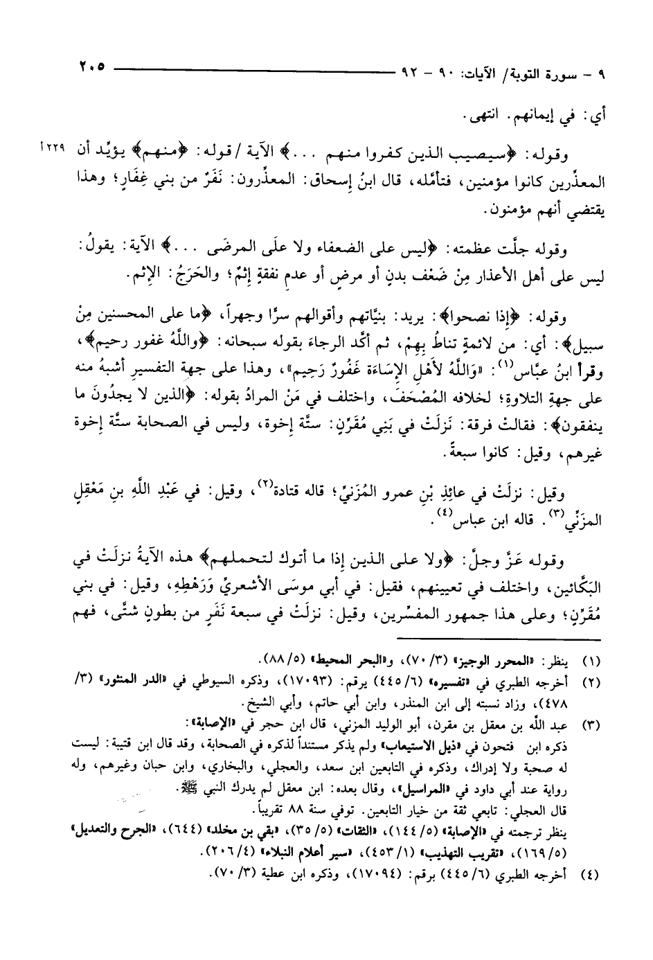 وقوله عَزَّ وجلَّ: وَلا عَلَى الَّذِينَ إِذا مَا أَتَوْكَ لِتَحْمِلَهُمْ هذه الآيةُ نزلَتْ في البَكَّائين، واختلف في تعيينهم، فقيل: في أبي موسَى الأشعريِّ وَرَهْطِهِ، وقيل: في بني مُقَرِّنٍ وعلى هذا جمهور المفسِّرين، وقيل: نزلَتْ في سبعة نَفَرٍ من بطونٍ شتَّى، فهم