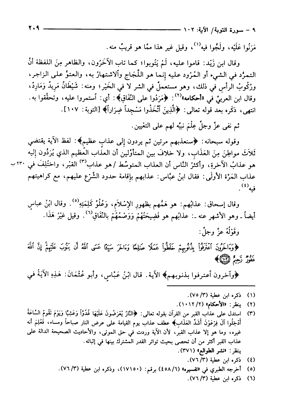 وَآخَرُونَ اعْتَرَفُوا بِذُنُوبِهِمْ الآية. قال ابْنُ عَبَّاسٍ، وأبو عثمان: هذه الآية في