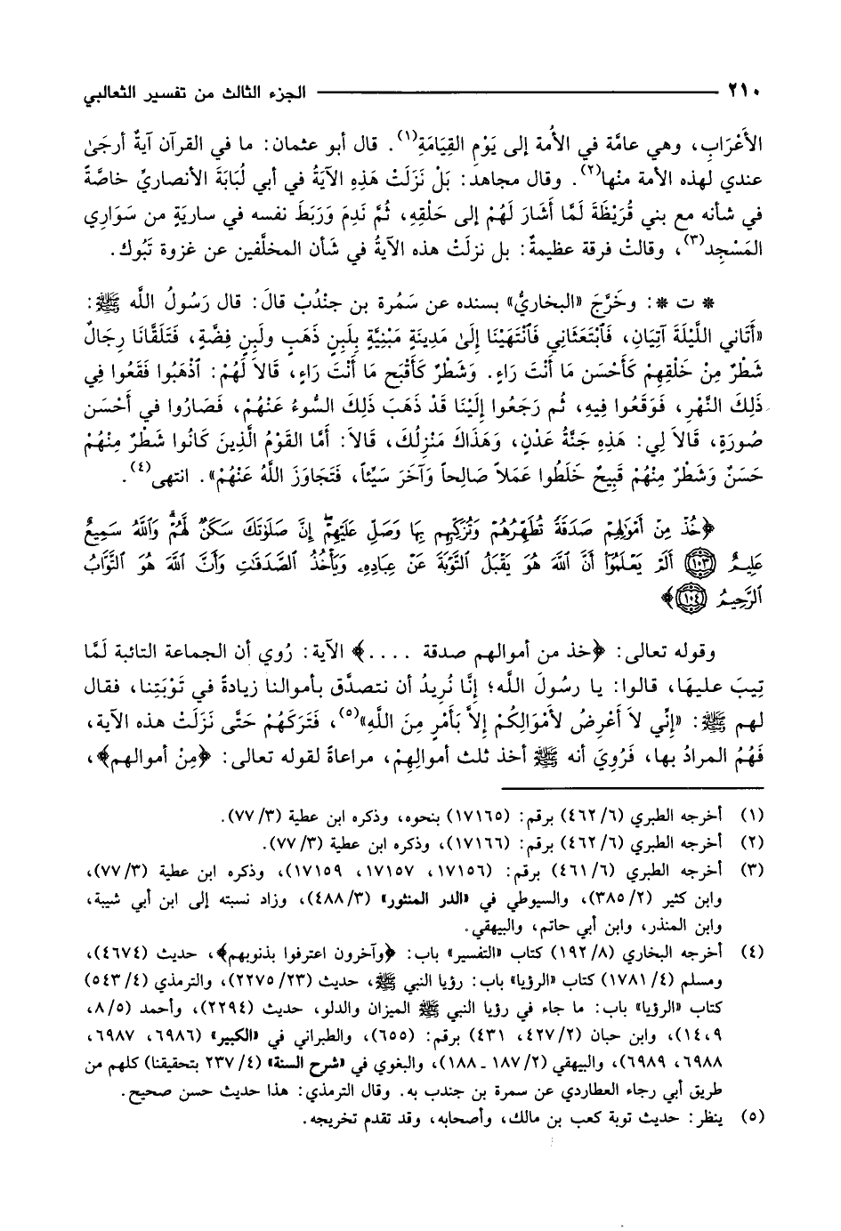 (5) ينظر: حديث توبة كعب بن مالك، وأصحابه، وقد تقدم تخريجه.