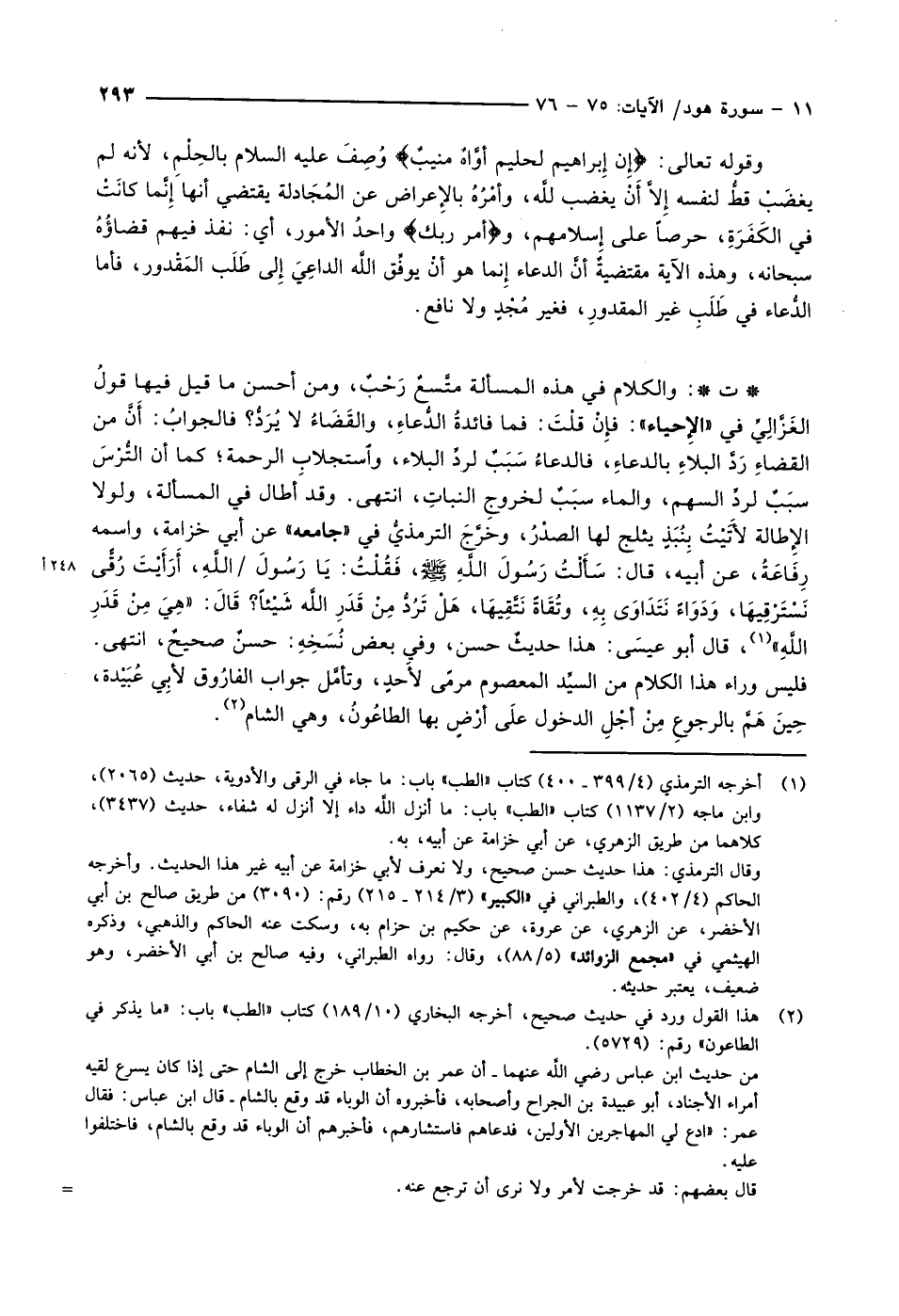 وقوله تعالى: إِنَّ إِبْراهِيمَ لَحَلِيمٌ أَوَّاهٌ مُنِيبٌ وُصِفَ عليه السلام بالحِلْمِ، لأنه لم يغضَبْ قطُّ لنفسه إِلاَّ أَنْ يغضب للَّه، وأمْرُهُ بالإِعراض عن المُجَادلة يقتضي أنها إِنَّما كانَتْ في الكفرة، حرصا على إسلامهم، وأَمْرُ رَبِّكَ واحدُ الأمور، أي: نفذ فيهم قضاؤُهُ سبحانه، وهذه الآية مقتضيةٌ أنَّ الدعاء إِنما هو أنْ يوفِّق اللَّه الداعِيَ إِلى طَلَب المَقْدور، فأما الدُّعاء في طَلَبِ غير المقدورِ، فغير مُجْدٍ ولا نافع.