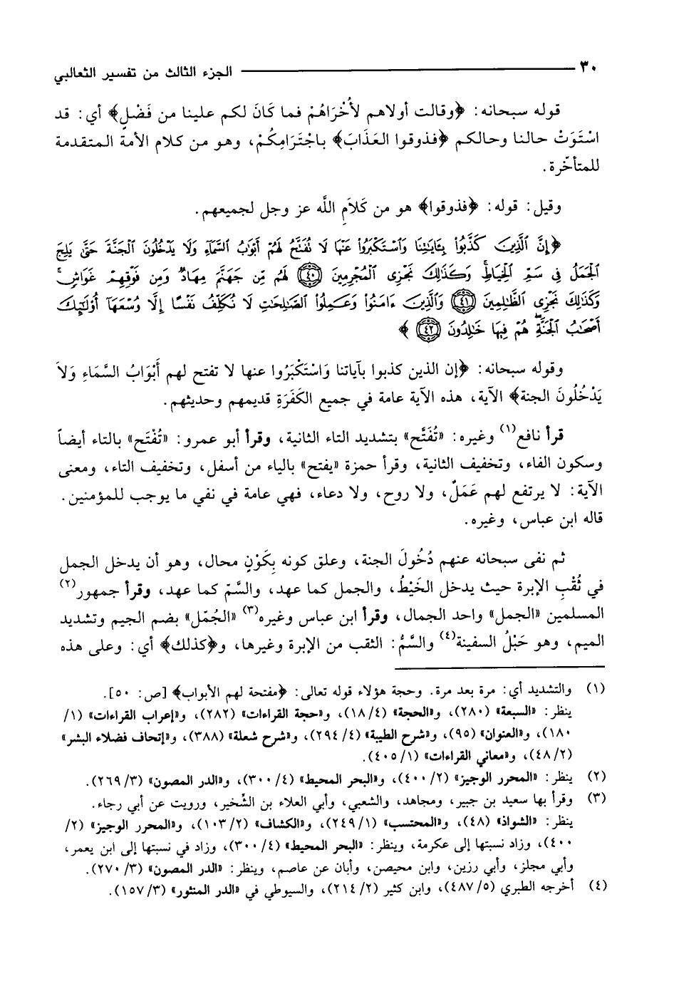 (2) ينظر: «المحرر الوجيز» (2/ 400) ، و «البحر المحيط» (4/ 300) ، و «الدر المصون» (3/ 269) .