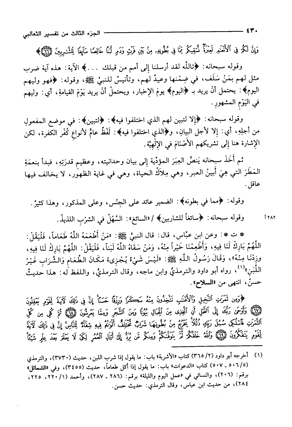 وقوله: مِمَّا فِي بُطُونِهِ: الضمير عائد على الجِنْس، وعلى المذكور، وهذا كثيرٌ.