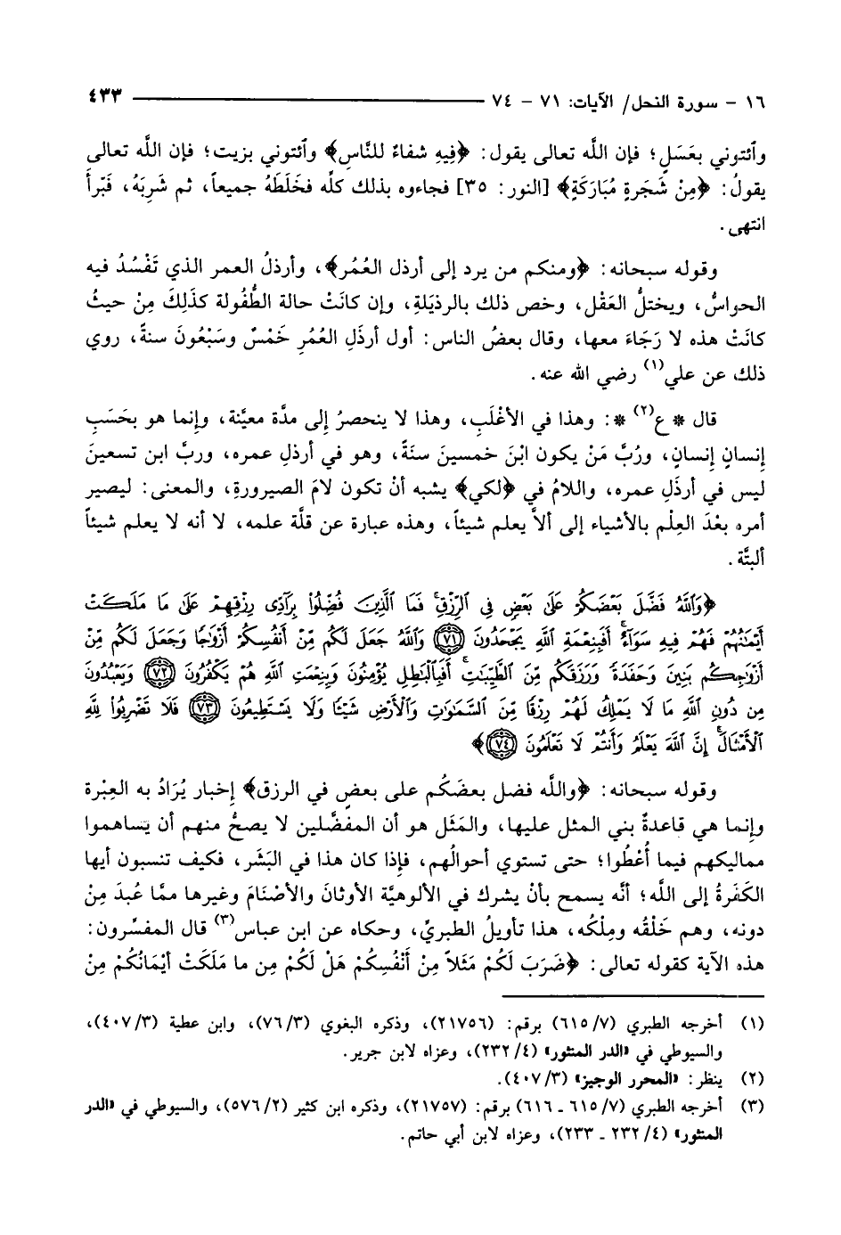 وَاللَّهُ فَضَّلَ بَعْضَكُمْ عَلى بَعْضٍ فِي الرِّزْقِ فَمَا الَّذِينَ فُضِّلُوا بِرَادِّي رِزْقِهِمْ عَلى ما مَلَكَتْ أَيْمانُهُمْ فَهُمْ فِيهِ سَواءٌ أَفَبِنِعْمَةِ اللَّهِ يَجْحَدُونَ (71) وَاللَّهُ جَعَلَ لَكُمْ مِنْ أَنْفُسِكُمْ أَزْواجاً وَجَعَلَ لَكُمْ مِنْ أَزْواجِكُمْ بَنِينَ وَحَفَدَةً وَرَزَقَكُمْ مِنَ الطَّيِّباتِ أَفَبِالْباطِلِ يُؤْمِنُونَ وَبِنِعْمَتِ اللَّهِ هُمْ يَكْفُرُونَ (72) وَيَعْبُدُونَ مِنْ دُونِ اللَّهِ ما لا يَمْلِكُ لَهُمْ رِزْقاً مِنَ السَّماواتِ وَالْأَرْضِ شَيْئاً وَلا يَسْتَطِيعُونَ (73) فَلا تَضْرِبُوا لِلَّهِ الْأَمْثالَ إِنَّ اللَّهَ يَعْلَمُ وَأَنْتُمْ لا تَعْلَمُونَ (74)