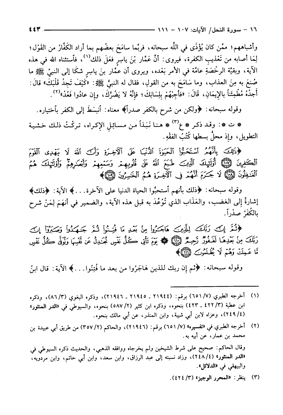 ثُمَّ إِنَّ رَبَّكَ لِلَّذِينَ هاجَرُوا مِنْ بَعْدِ ما فُتِنُوا ثُمَّ جاهَدُوا وَصَبَرُوا إِنَّ رَبَّكَ مِنْ بَعْدِها لَغَفُورٌ رَحِيمٌ (110) يَوْمَ تَأْتِي كُلُّ نَفْسٍ تُجادِلُ عَنْ نَفْسِها وَتُوَفَّى كُلُّ نَفْسٍ ما عَمِلَتْ وَهُمْ لا يُظْلَمُونَ (111)