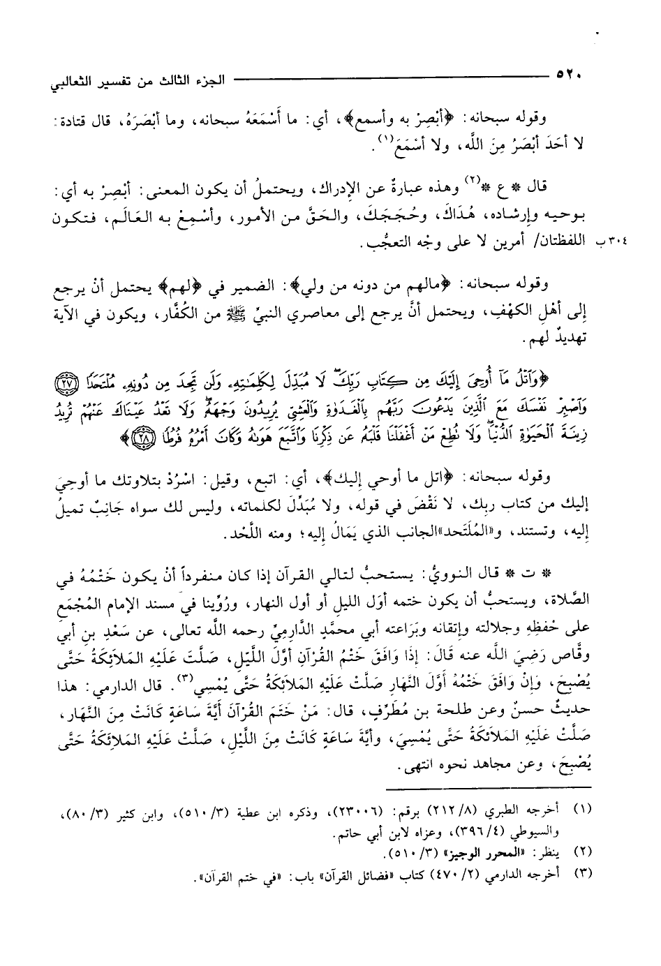 (3) أخرجه الدارمي (2/ 470) كتاب «فضائل القرآن» باب: «في ختم القرآن» .