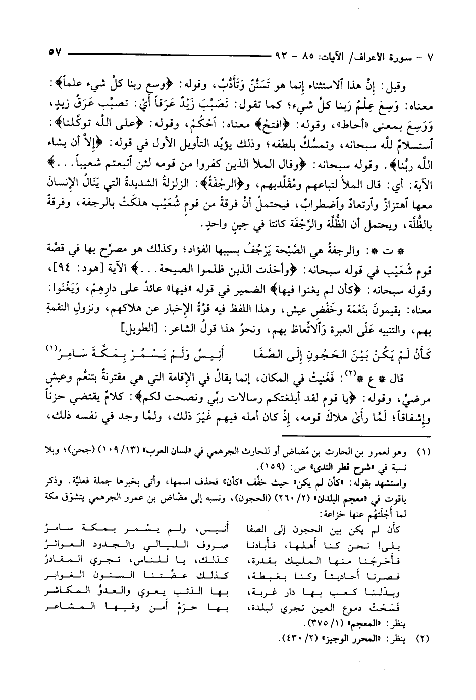 واستشهد بقوله: «كأن لم يكن» حيث خفّف «كأن» فحذف اسمها، وأتى بخبرها جملة فعليّة. وذكر ياقوت في «معجم البلدان» (2/ 260) (الحجون) ، ونسبه إلى مضّاض بن عمرو الجرهمي يتشوّق مكة لما أجلتهم عنها خزاعة: