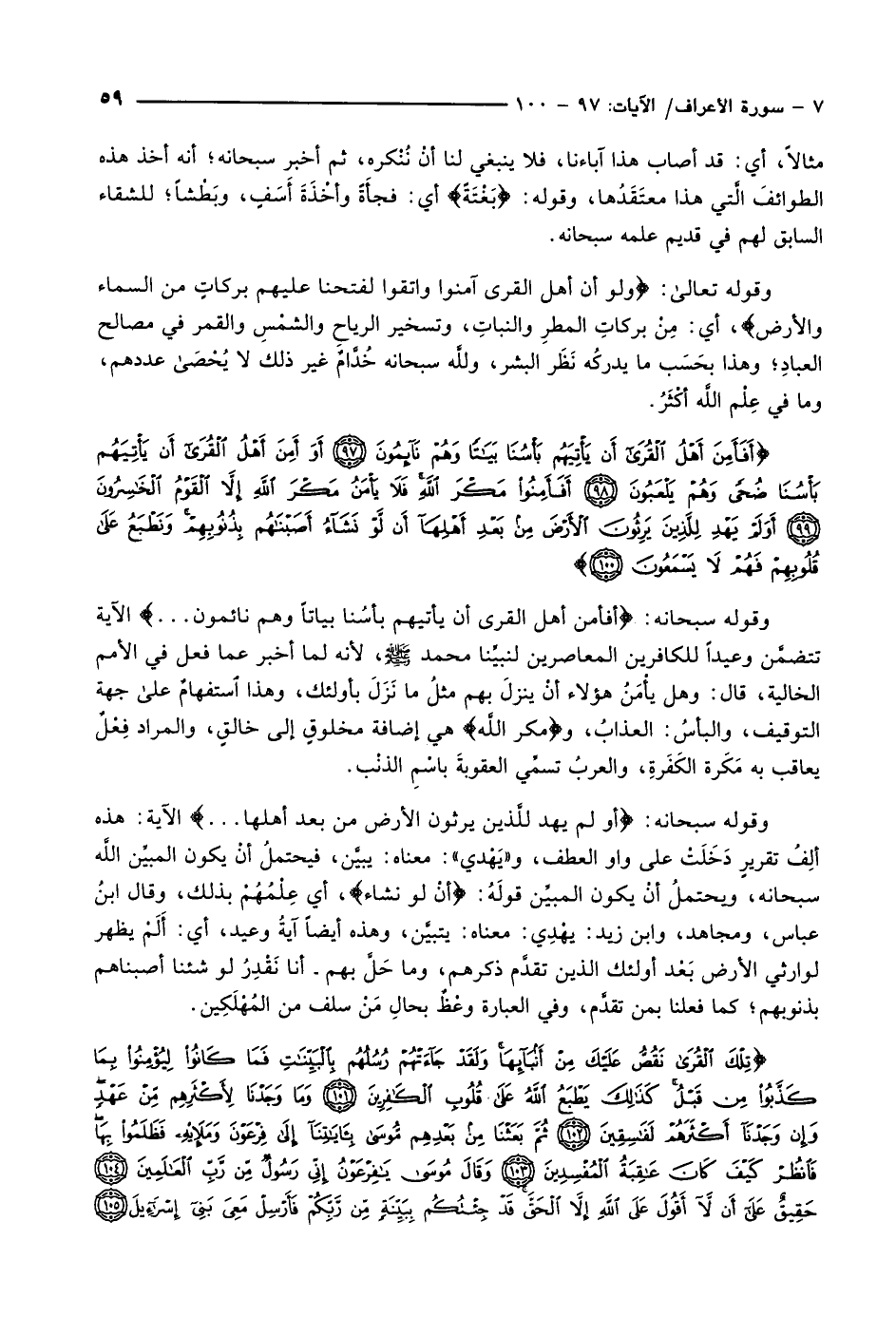 أَفَأَمِنَ أَهْلُ الْقُرى أَنْ يَأْتِيَهُمْ بَأْسُنا بَياتاً وَهُمْ نائِمُونَ (97) أَوَأَمِنَ أَهْلُ الْقُرى أَنْ يَأْتِيَهُمْ بَأْسُنا ضُحًى وَهُمْ يَلْعَبُونَ (98) أَفَأَمِنُوا مَكْرَ اللَّهِ فَلا يَأْمَنُ مَكْرَ اللَّهِ إِلاَّ الْقَوْمُ الْخاسِرُونَ (99) أَوَلَمْ يَهْدِ لِلَّذِينَ يَرِثُونَ الْأَرْضَ مِنْ بَعْدِ أَهْلِها أَنْ لَوْ نَشاءُ أَصَبْناهُمْ بِذُنُوبِهِمْ وَنَطْبَعُ عَلى قُلُوبِهِمْ فَهُمْ لا يَسْمَعُونَ (100)