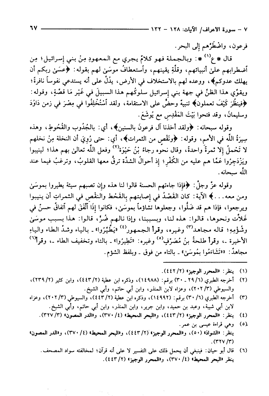 (4) ينظر: «المحرر الوجيز» (2/ 443) ، و «البحر المحيط» (4/ 370) ، و «الدر المصون» (3/ 327) .