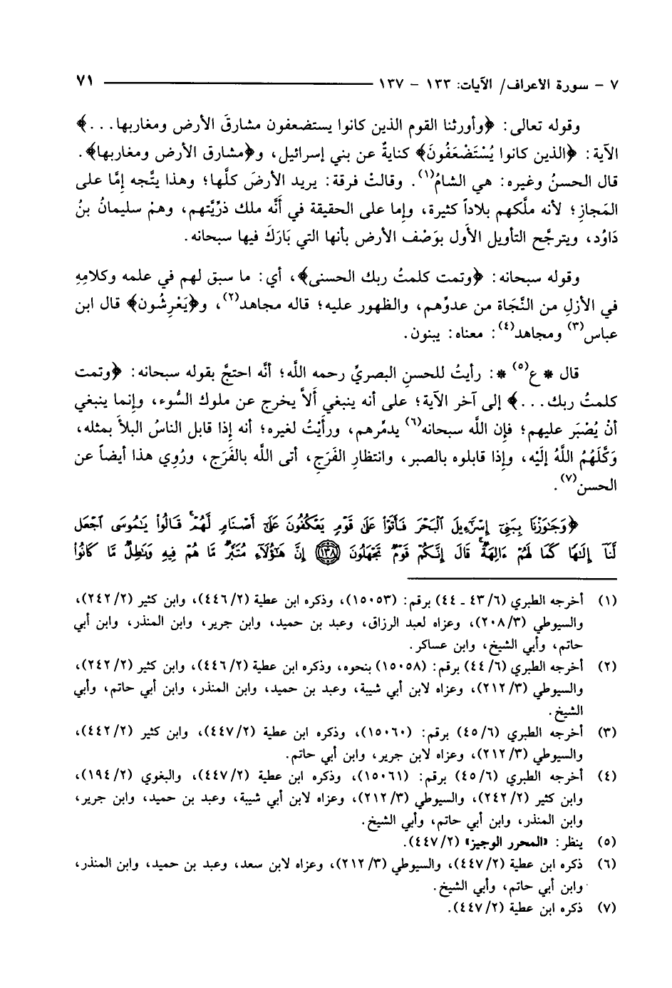 (6) ذكره ابن عطية (2/ 447) ، والسيوطي (3/ 212) ، وعزاه لابن سعد، وعبد بن حميد، وابن المنذر، وابن أبي حاتم، وأبي الشيخ.