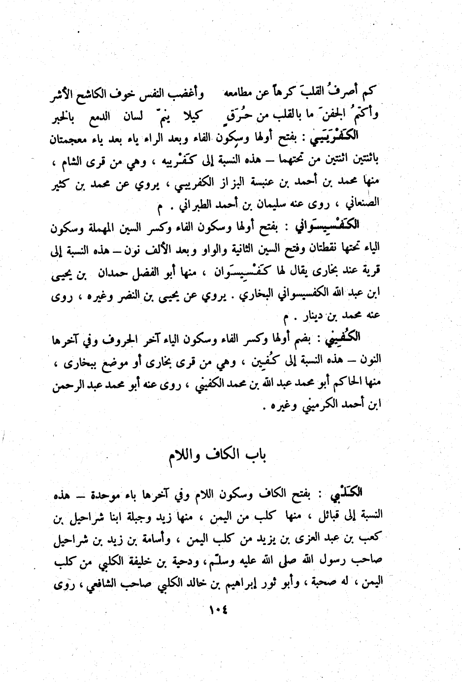 - بَاب الْكَاف وَاللَّام