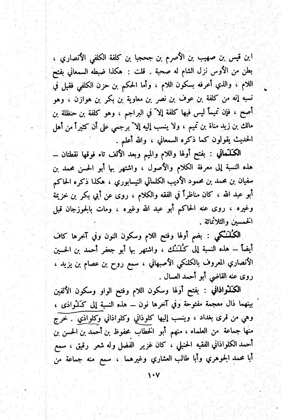 الكلواذاني بِفَتْح أَولهَا وَسُكُون اللَّام وَفتح الْوَاو وَسُكُون الْأَلفَيْنِ بَينهمَا ذال مُعْجمَة مَفْتُوحَة وَفِي آخرهَا نون هَذِه النِّسْبَة إِلَى كلواذى وَهِي من قرى بَغْدَاد وينسب إِلَيْهَا كلوذاني وكلواذاني وكلواذي خرج مِنْهَا جمَاعَة من الْعلمَاء مِنْهُم أَبُو الْخطاب مَحْفُوظ بن أَحْمد بن الْحسن بن أَحْمد الكلواذاني الْفَقِيه الْحَنْبَلِيّ كَانَ غزير الْفضل وَله شعر رَقِيق سمع أَبَا مُحَمَّد الْجَوْهَرِي وَأَبا طَالب العشاري وَغَيرهمَا سمع مِنْهُ جمَاعَة من