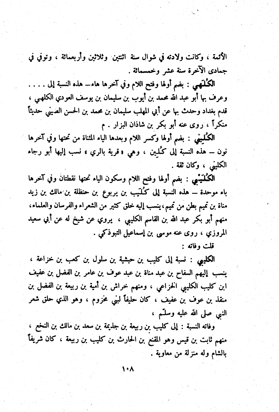 قلت وَفَاته الكليبي نِسْبَة إِلَى كُلَيْب بن حبشية بن سلول بن كَعْب بن خُزَاعَة ينْسب إِلَيْهِم السفاح بن عبد مَنَاة بن عبد عَوْف بن عَامر بن الْفضل بن عفيف ابْن كُلَيْب الكليبي الْخُزَاعِيّ وَمِنْهُم خرَاش بن أُميَّة بن ربيعَة بن الْفضل بن منقذ بن عَوْف بن عفيف كَانَ حليفا لبني مَخْزُوم وَهُوَ الَّذِي حلق شعر النَّبِي صلى الله عَلَيْهِ وَسلم