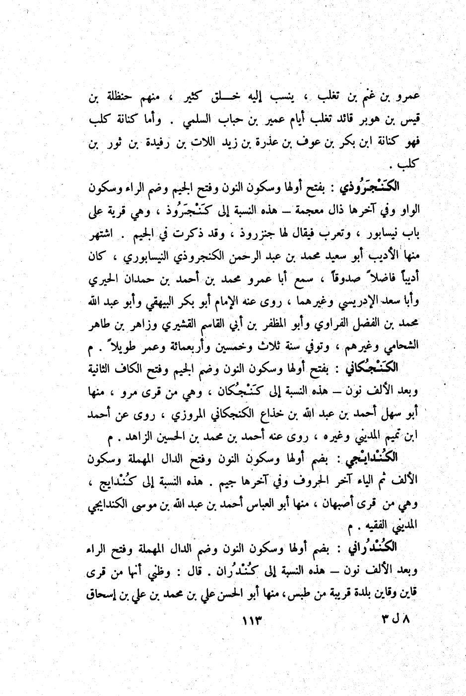 الكنجروذي بِفَتْح أَولهَا وَسُكُون النُّون وَفتح الْجِيم وَضم الرَّاء وَسُكُون الْوَاو وَفِي آخرهَا ذال مُعْجمَة هَذِه النِّسْبَة إِلَى كنجروذ وَهِي قَرْيَة على بَاب نيسابور وتعرب فَيُقَال لَهَا جنزروذ وَقد ذكرت فِي الْجِيم اشْتهر مِنْهَا الأديب أَبُو سعيد مُحَمَّد بن عبد الرَّحْمَن الكنجروذي النَّيْسَابُورِي كَانَ أديبا فَاضلا صَدُوقًا سمع أَبَا عَمْرو مُحَمَّد بن أَحْمد بن حمدَان الْحِيرِي وابا سعد الإدريسي وَغَيرهمَا روى عَنهُ الإِمَام أَبُو بكر الْبَيْهَقِيّ وَأَبُو عبد الله مُحَمَّد بن الْفضل الفراوي وَأَبُو المظفر بن أبي الْقَاسِم الْقشيرِي وزاهر بن طَاهِر الشحامي وَغَيرهم وَتُوفِّي سنة ثَلَاث وَخمسين وَأَرْبَعمِائَة وَعمر طَويلا م