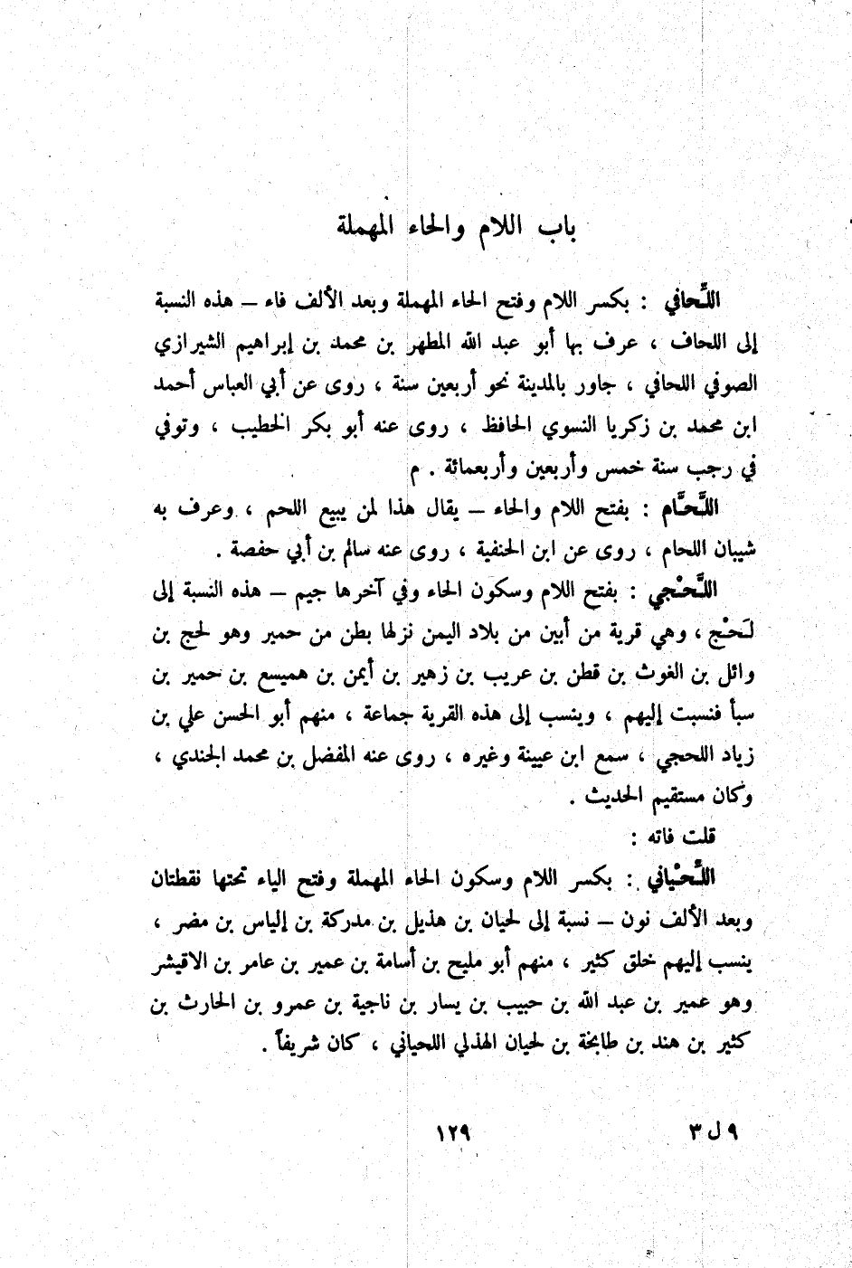 - بَاب اللَّام والحاء الْمُهْملَة