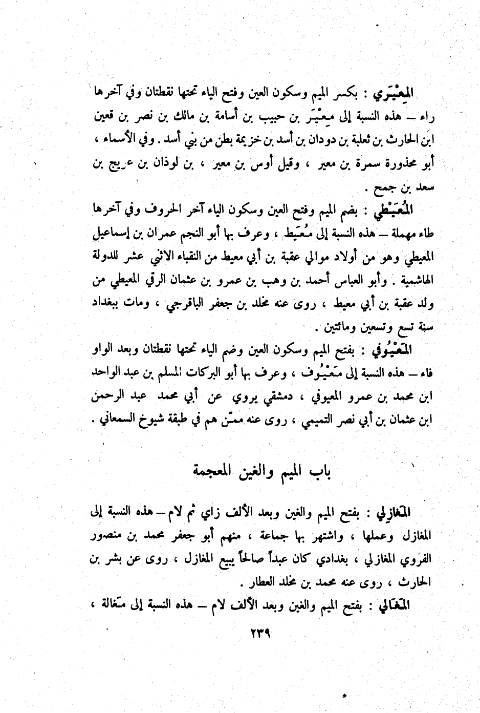 المعيطي بِضَم الْمِيم وَفتح الْعين وَسُكُون الْيَاء آخر الْحُرُوف وَفِي آخرهَا طاء مُهْملَة هَذِه النِّسْبَة إِلَى معيط وَعرف بهَا أَبُو النَّجْم عمرَان بن إِسْمَاعِيل المعيطي وَهُوَ من أَوْلَاد موَالِي عقبَة بن أبي معيط من النُّقَبَاء الاثْنَي عشر للدولة الهاشمية وَأَبُو الْعَبَّاس أَحْمد بن وهب بن عَمْرو بن عُثْمَان الرقي المعيطي من ولد عقبَة بن أبي معيط روى عَنهُ مخلد بن جَعْفَر الباقرجي وَمَات بِبَغْدَاد سنة تسع وَتِسْعين وَمِائَتَيْنِ