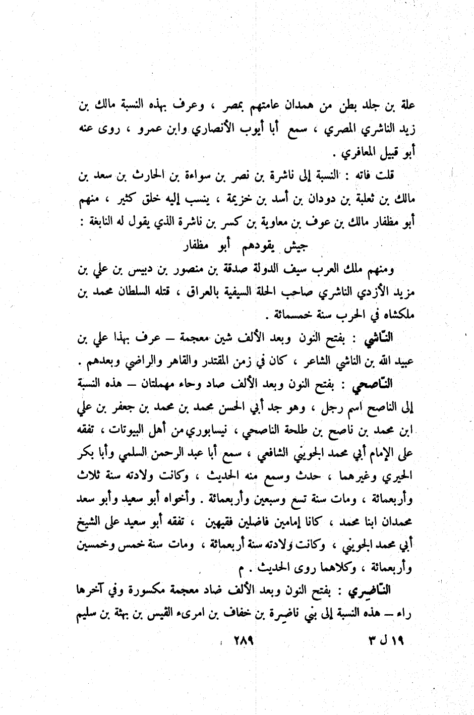 قلت فَاتَهُ النِّسْبَة إِلَى نَاشِرَة بن نصر بن سواءة بن الْحَارِث بن سعد بن مَالك بن ثَعْلَبَة بن دودان بن أَسد بن خُزَيْمَة ينْسب إِلَيْهِ خلق كثير مِنْهُم أَبُو مظفار مَالك بن عَوْف بن مُعَاوِيَة بن كسر بن نَاشِرَة الَّذِي يَقُول لَهُ النَّابِغَة (جَيش يقودهم أَبُو مظفار ... )