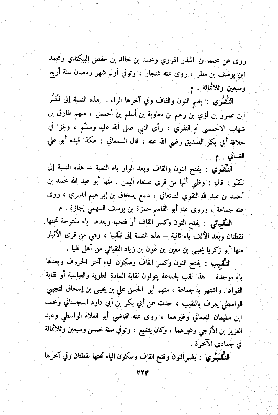النقيري بِضَم النُّون وَفتح الْقَاف وَسُكُون الْيَاء تحتهَا نقطتان وَفِي آخرهَا