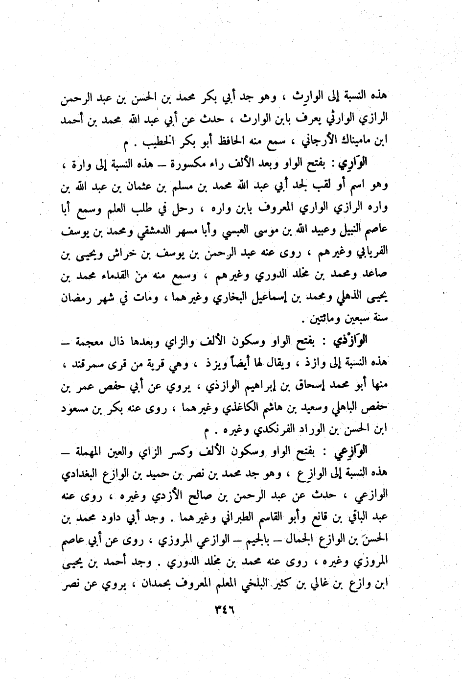 الواري بِفَتْح الْوَاو وَبعد الالف رَاء مَكْسُورَة هَذِه النِّسْبَة إِلَى وارة وَهُوَ اسْم أَو لقب لجد أبي عبد الله مُحَمَّد بن مُسلم بن عُثْمَان بن عبد الله بن واره الرَّازِيّ الواري الْمَعْرُوف بِابْن واره رَحل فِي طلب الْعلم وَسمع أَبَا عَاصِم النَّبِيل وَعبيد الله بن مُوسَى الْعَبْسِي وَأَبا مسْهر الدِّمَشْقِي وَمُحَمّد بن يُوسُف الْفرْيَابِيّ وَغَيرهم روى عَنهُ عبد الرَّحْمَن بن يُوسُف بن خرَاش وَيحيى بن صاعد وَمُحَمّد بن مخلد الدوري وَغَيرهم وَسمع مِنْهُ من القدماء مُحَمَّد بن يحيى الذهلي وَمُحَمّد بن إِسْمَاعِيل البُخَارِيّ وَغَيرهمَا وَمَات فِي شهر رَمَضَان سنة سبعين وَمِائَتَيْنِ
