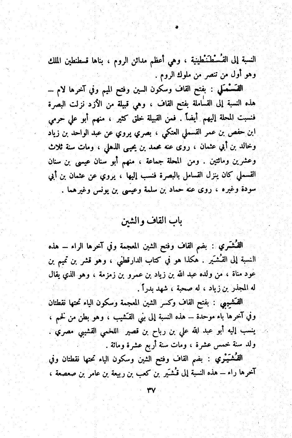 الْقشيرِي بِضَم الْقَاف وَفتح الشين وَسُكُون الْيَاء تحتهَا نقطتان وَفِي آخرهَا رَاء هَذِه النِّسْبَة إِلَى قُشَيْر بن كَعْب بن ربيعَة بن عَامر بن صعصعة
