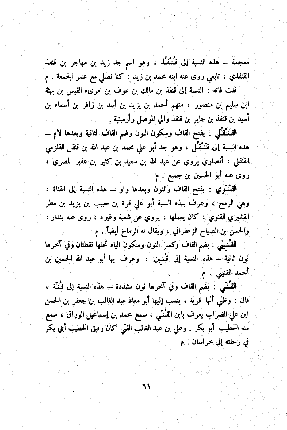قلت فَاتَهُ النِّسْبَة إِلَى قنفذ بن مَالك بن عَوْف بن امْرِئ الْقَيْس بن بهثة ابْن سليم بن مَنْصُور مِنْهُم أَحْمد بن يزِيد بن أَسد بن زَافِر بن أَسمَاء بن أسيد بن قنفذ بن جَابر بن قنفذ وَالِي الْموصل وأرمينية