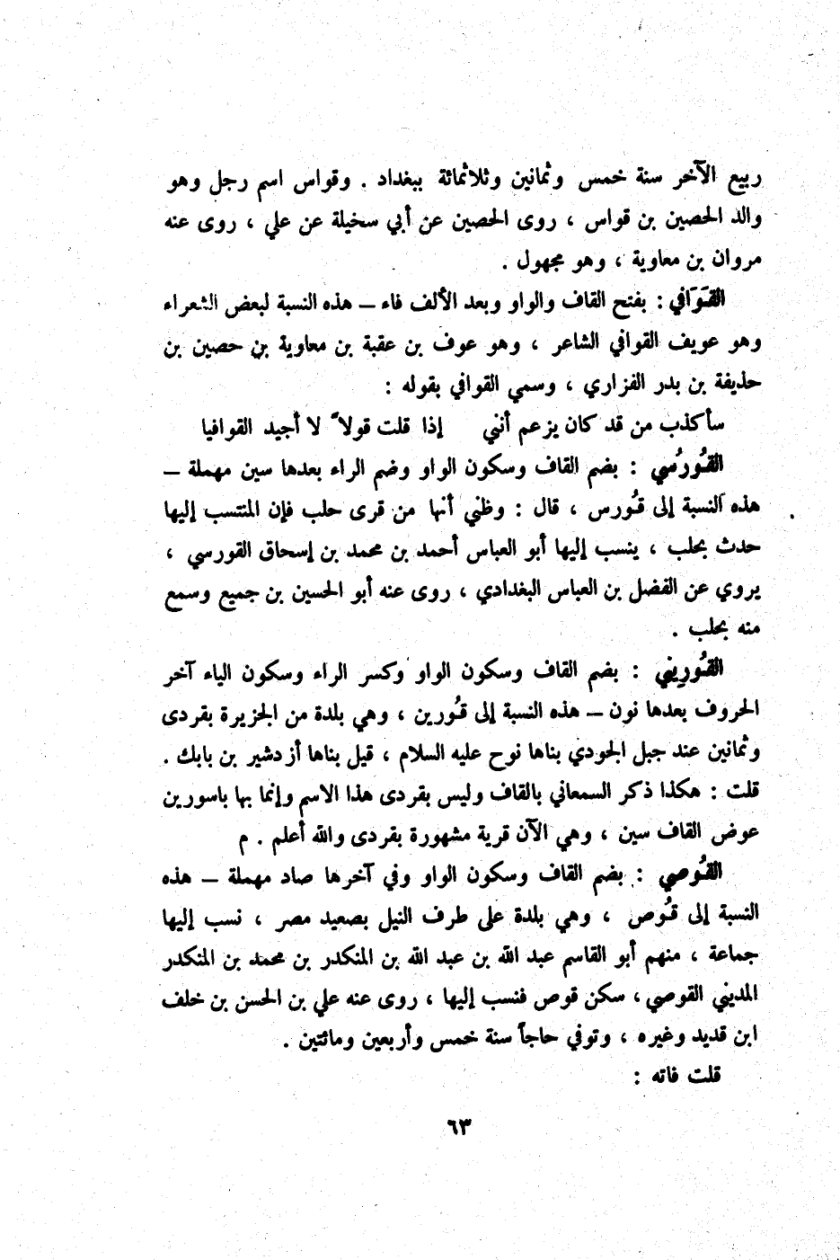 ربيع الآخر سنة خمس وَثَمَانِينَ وثلاثمائة بِبَغْدَاد وقواس اسْم رجل وَهُوَ وَالِد الْحصين بن قواس روى الْحصين عَن أبي سخيلة عَن عَليّ روى عَنهُ مَرْوَان بن مُعَاوِيَة وَهُوَ مَجْهُول